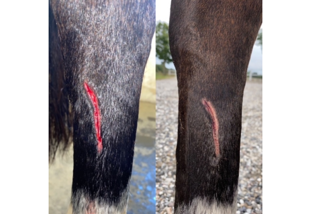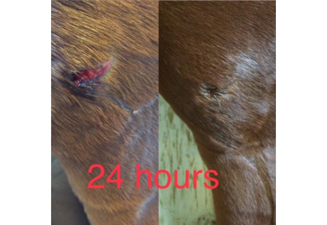 Several of our customers, has also realized how well Equine LTS works on wounds and lacerations in horses. Here are some of the numerous pictures, which has been send to us.
